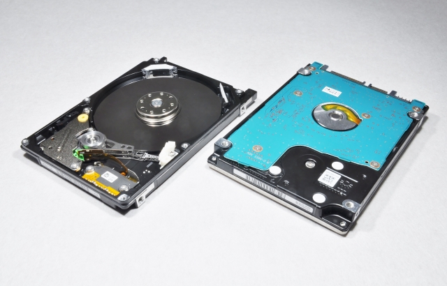 HDD(ハードディスク)歴史も長く大容量。データ保存にも向くが、可動部分があり衝撃には弱い他、昨今のWindowsを安定稼働させるためには速度が遅い面が否めない。